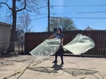 • Lightweight organza for smooth, flowing, airy movement with sewn in wooden rods